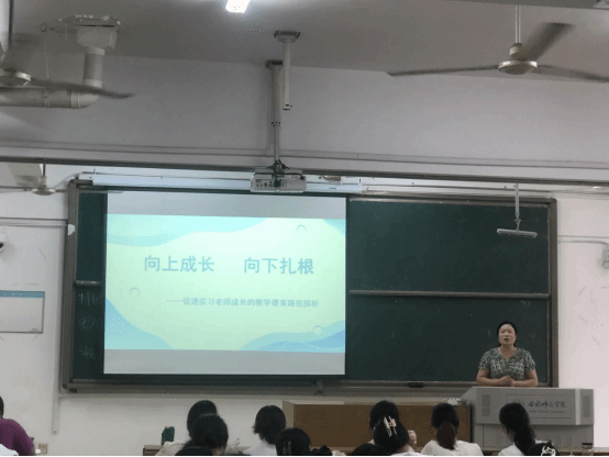 张岚老师的讲座以“向上成长,向下扎根”为主题,她结合往年的实习经验,谈到师范生在实习教学中应该注意的事项,明确实习的任务,端正实习态度,并从“新理念新征程新路径”“依托语篇的主题混合式教学”“德育:做自己人生的导演”等方面进行指导,为实习生在实践教学中更好的成长打下坚实的基础。此外,张老师就如何加强师范生技能学习提出了几点建议,她嘱咐实习生,实习就是个绝佳的历练机会,帮助实习生们找到自身的不足和将来努力的方向,将impossible变成I'm possible。
