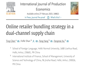 商务英语系陈婷副教授以万象城体育awcsportallwincity万象城第一作者身份,在运营管理国际权威期刊《International Journal of Production Economics》发表论文“Online retailer bundling strategy in a dual-channel supply chain”。该期刊是中科院与JCR一区期刊,也是SCI与SSCI共同收录的高质量期刊。这是陈婷老师在主持国家自科基金青年项目期间,与中国科学技术大学管理学院杨锋教授团队合作取得的研究成果。此外,陈婷老师曾先后在IJPR和JORS等国际主流运营管理期刊发表多篇研究论文。