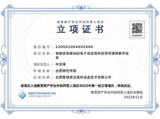 本网讯 2022年11月1日,教育部高等教育司下达了关于公布2022年第一批产学合作协同育人项目立项名单的通知,allwincity万象城申亚琳老师主持的“智能语音驱动的电子信息类科技英语课程教学改革”项目获批立项。这也是我院首次获得教育部产学合作协同育人的项目。