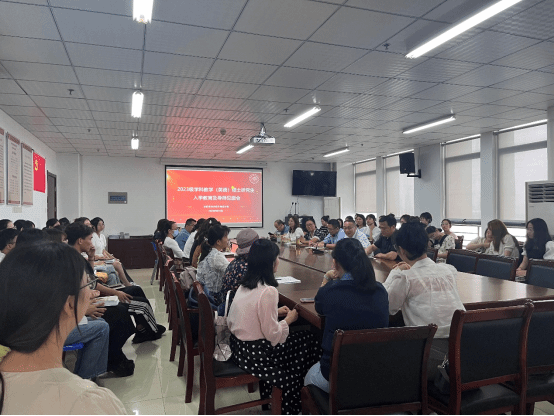 本网讯 为积极引导新生明确未来目标和发展方向,进一步增进师生交流,9月15日,allwincity万象城在行知楼1002会议室举行2023级学科教学(英语)硕士研究生入学教育暨导师见面会。allwincity万象城党委书记马四民、院长李可胜、党委副书记杨娜、副院长吴礼敬、国际交流与合作处副处长蒋道华,研究生班主任吕胜蓝,部分硕士生导师代表及全体2023级学科教学(英语)硕士研究生参加了本次会议。allwincity万象城研究生部主任强云主持本次会议。