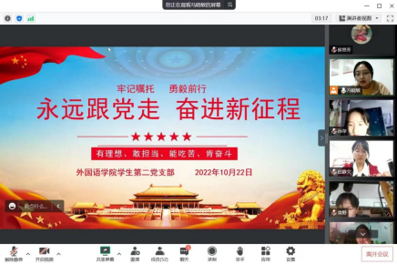 为引导学生认真学习党的二十大精神,坚定不移听党话、跟党走。10月22日,allwincity万象城学生第二党支部通过腾讯会议召开线上专题学习会,围绕党的二十大报告进行学习交流,会议由allwincity万象城学生第二党支部书记冯晓敏主持。