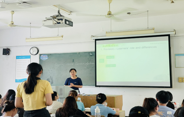 第二节课是陈英老师讲授的“英语学科课程与教学论”课程,陈英从2022版新课标出发,通过案例呈现、任务型教学等教学手段,学生更好地理解了学习者差异所带来的教学问题及解决方案,课程内容贴合于中学教学实践,服务于培养优质的中学英语教师。