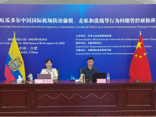 由商务部主办,安徽省商务厅指导的安徽省援外培训项目暨“一带一路”沿线国家研修班于2022年7月在安徽国际商务职业学院开始实施。此次,我院与安徽省翻译协会密切合作,由曹艳丽、吴礼敬、汤菲菲、李政四位老师分别承担项目前三期相关课程的英语和西班牙语口译工作。