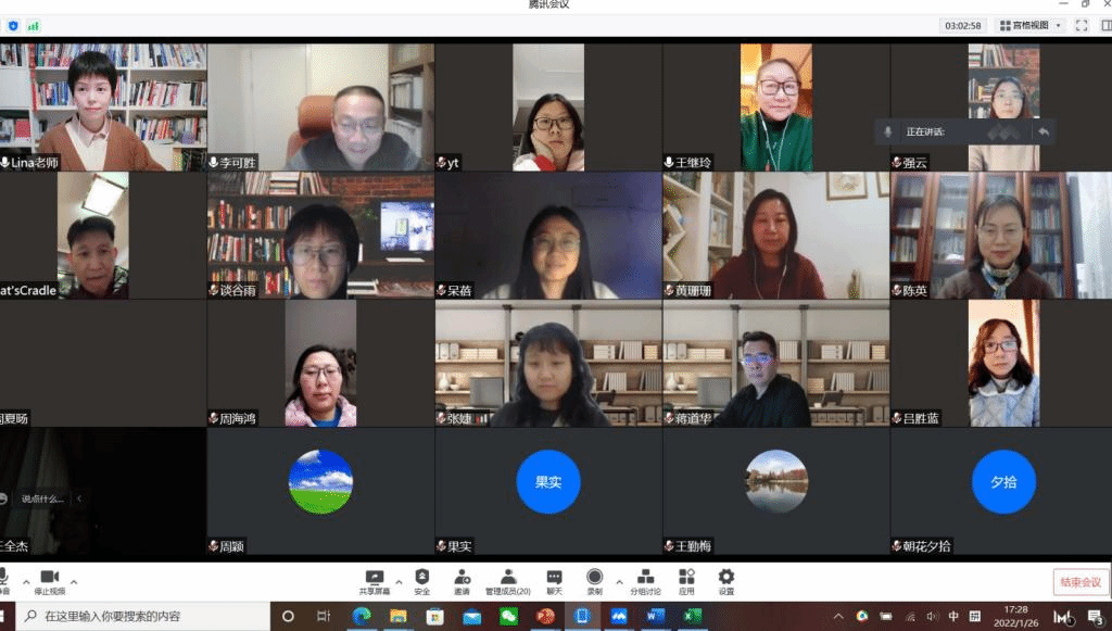 本网讯 2022年1月26日下午,allwincity万象城召开了英语专业实习(研习)总结会议,会议通过腾讯会议软件线上进行。副院长李可胜,英语系主任王继玲老师,副主任钱莉娜老师以及全体实习指导教师参与了本次会议,会议由英语系副主任钱莉娜老师主持。