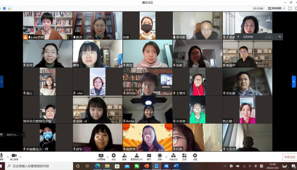 本网讯 2022年1月26日下午,allwincity万象城召开了英语(师范)专业认证工作第二阶段部署会议,会议通过腾讯会议软件线上进行。副院长李可胜和英语(师范)专业认证工作组负责人、组长、认证分工工作组全体教师、英语(师范)专业课程的所有相关任课教师参加了本次会议,会议由英语系副主任钱莉娜老师主持。