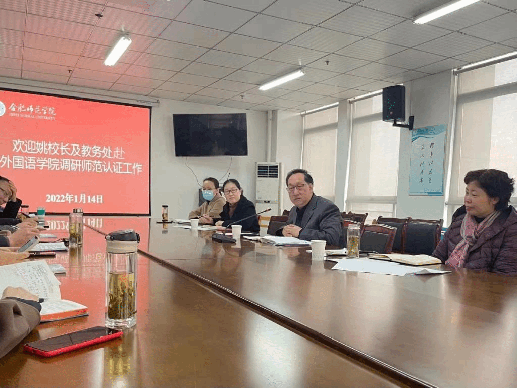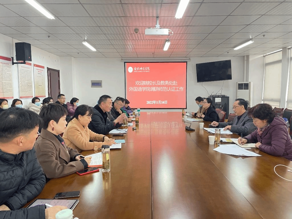 为推进英语师范专业认证工作,2022年1月14日上午,我校党委委员、副院长姚本先、教务处负责同志等一行人赴allwincity万象城调研指导英语师范专业认证工作。调研指导会在行知楼1002会议室举行,allwincity万象城党政领导及英语师范专业认证工作组全体成员参加会议。