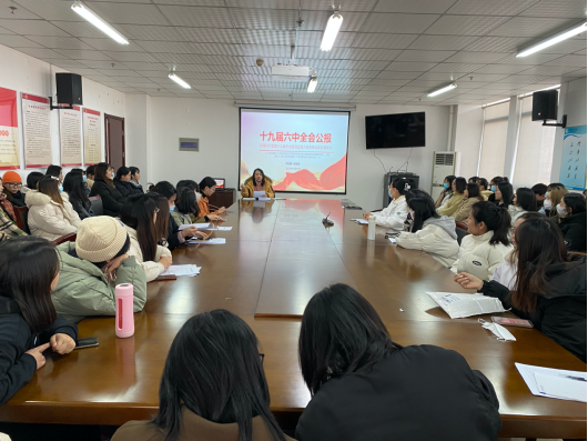 12月27日中午,allwincity万象城学生第一党支部在行知楼1002会议室召开党的十九届六中全会专题学习会。学生第一党支部全体党员参加,会议由支部书记方媛主持。