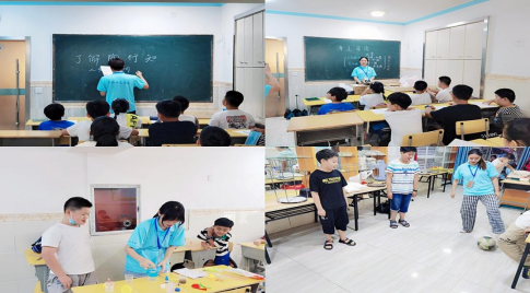 除了必修课,Hots行知学堂的小先生们也结合自己的专业特色和个人特长,开设了音乐、书法、科学、体育等兴趣课程,努力提高小学员们的学习兴趣。课堂上不仅有彩虹喷泉、人造雪等有趣的小实验,还有踢毽子、踢足球、打羽毛球等丰富多彩的体育运动,促进小学员们提高动手实践能力,锻炼身体,寓教于乐。