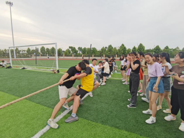 本次趣味运动会采取“趣味游戏”加“才艺表演”的组合形式,将趣味性与艺术性和专业特色相融合,充分激发同学们的参与热情。本次活动的游戏环节共有4个项目,主要包括指定歌词唱歌、两人三足、拔河比赛以及互助按摩等内容。在两人三足环节中,选手们积极配合,手挽着手,齐喊口号,以整齐的步伐稳步向前,选手们掌握节奏后便不断加速,全力冲向终点。在考验团队协作能力的拔河比赛中,比赛开始前,两组队伍的选手们便跃跃欲试,哨声一响,选手们咬紧牙关使出全力,班级同学在一旁加油助威,运动场上,呐喊声和欢笑声此起彼伏。
