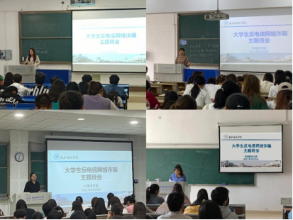 会上,辅导员们首先向同学们说明反电信网络诈骗的重要意义和目前国内外在反电信网络诈骗工作中取得的成效,重点介绍了网络刷单、虚假购物、冒充客服等十种常见的诈骗手段。通过真实的案例来剖析诈骗的各种套路,和同学们一起进行了反电信网络诈骗随堂测试,及时发现认识上的不足,引导同学们提高安全防范意识,不轻信他人。