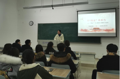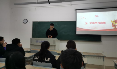 在交流学习感悟环节中,同学们纷纷结合自身学习经历,分享自己的切身体会。19级商务英语2班的柳婉琪说:“习近平总书记提出要不忘初心,继续前进。作为入党积极分子,我们应该深刻理解这句话的含义。作为班级的骨干力量,“四史”的学习应该由我们带头进行,我们要充分发挥模范带头作用,以身作则,积极并且自愿地去学习“四史”,努力提升自己的政治意识,从而更好的完成各项工作。”