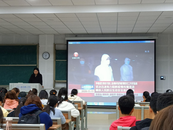 会上,冯晓敏首先向同学们传达了省委教育工委、省教育厅部署冬季校园疫情防控工作会议内容,从三个方面向同学们详细介绍会议的相关要求。她通过播放新闻视频向同学们介绍当前安徽疫情防控形势,及时了解疫情防控的最新动态,提高同学们的防控意识。随后,冯晓敏从校园疫情防控、个人防护措施以及其他事项几方面进行说明和解释,并对同学们提出三点要求:一是要积极配合学校的疫情防控工作,疫情尚未结束,防控疫情,人人有责;二是要增强自我防护意识,尽量少出门,如需外出,要履行好请假手续,外出要戴好口罩,不聚集不扎堆,锻炼身体,提高身体素质;三是要调整好心理状态,科学应对疫情,同时要做到不信谣、不造谣、不传谣,多关注时事新闻。