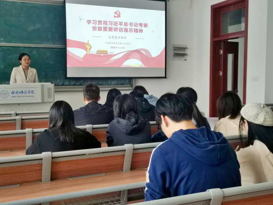 会上,冯晓敏带领同学们认真学习《习近平在安徽考察时强调坚持改革开放坚持高质量发展在加快建设美好安徽上取得新的更大进展》文件内容,并从两个方面介绍了习近平总书记考察安徽重要讲话中的丰富内涵和重要意义。她强调要全面把握、深入理解习近平总书记讲话中的重要精神,要将讲话精神与自身发展实际相结合,努力做到融会贯通。