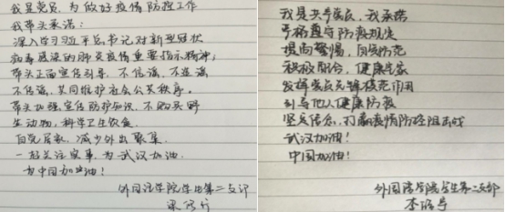疫情就是命令,防控就是责任。主题党日活动上,在支部书记周老师的带领下,全体党员再次深入学习了习近平总书记关于疫情防控工作的系列重要指示批示精神、《省委教育工委号召全省教育系统基层党组织和党员在疫阻击战中进一步发挥战斗堡垒作用和先锋模范作用》、《万象城体育awcsport“我是党员,我带头”——致全院各级党组织和全体党员的倡议书》文件精神和疫情防控阻击战有关知识。随后,支部党员进行承诺,“我是党员,我承诺:不聚会,少出门,勤洗手,从我做起。”“我是党员,我承诺:不信谣,不传谣,不造谣。”“武汉加油!中国加油!”。各位党员铿锵有力地作出自己对防控疫情工作的个人承诺,饱含深情地表达对武汉和祖国的祝福。时刻提醒自己使命在肩,切实发挥党员先锋模范作用,担当作为、冲锋有我,不造谣、不传谣、不信谣,坚定信心、齐心协力,坚决打赢疫情防控阻击战!活动最后,支部共同倡议每位党员通过“学习强国”每周看一部红色电影、每月看一本红色书籍并线上线下积极交流分享体会,不断加强自身的思想政治建设。