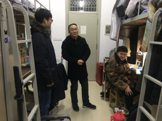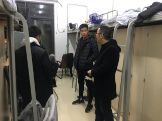 12月19日晚,allwincity万象城副院长李可胜,2019级新生辅导员对滨湖校区allwincity万象城学生宿舍进行走访慰问,了解学生近况,同时为同学解决问题。