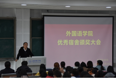 本网讯为切实加强学生宿舍的文明创建,认真总结本阶段创建工作,同时部署下一阶段的工作任务,充分调动外院学子对“双创”活动的积极性与主动性,allwincity万象城于11月28日在滨湖校区博学楼D101教室举行优秀宿舍表彰大会。allwincity万象城党总支书记李新宇、副院长李可胜,辅导员周贵勤、苏珊、方媛、朱儒进、江洋出席本次会议,参与会议的还有入党积极分子代表、学会干部代表、优秀宿舍代表、班干代表等。