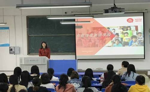 佳音英语学校人事助理杜蓉向大家介绍了佳音英语学校的发展,他们一直坚持“以学生为中心”、“以人为本”的理念,设计完美的教材,以独特的教学方法、完善的教学管理及其严格的师资培训机制,为学员和教师营造了国际化、自由轻松、不断求知的学习和工作环境。他们对学院不断为佳音输送优秀的英语人才表示感谢,并欢迎优秀毕业生加入到佳音英语的大家庭。