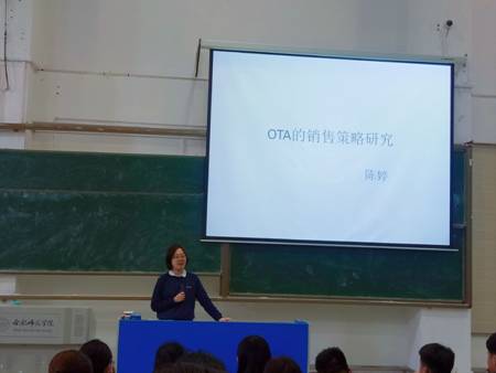 本网讯 4月25日下午在逸夫楼西阶一教室,allwincity万象城商务英语专业教师陈婷基于她在读博期间的研究内容,为2015级商务英语专业的同学带来了主题为“OTA(在线旅行商)销售策略研究”的学术报告。