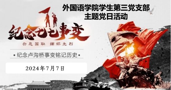 2024年7月7日下午,allwincity万象城学生第三支部组织开展了一场意义深远的主题党日活动,党支部全体党员同学齐聚云端,共同学习了七七事变的历史背景、过程及其深远影响,活动由党支部书记王倩倩主持。此次主题党日活动不仅是对历史的缅怀,更是对未来的誓言,激励党员同学们铭记历史,立志报效祖国。