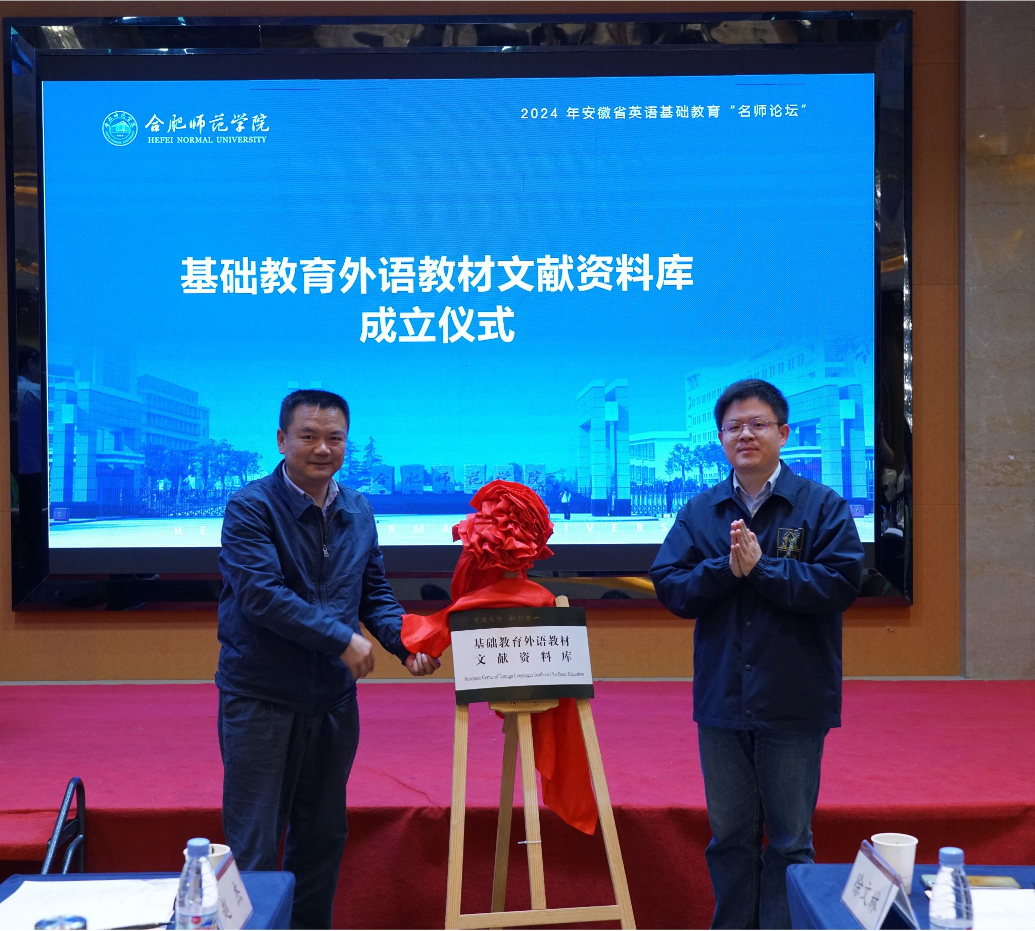 allwincity万象城院长李可胜介绍了“名师论坛”的成立目标和运作机制,副院长吴礼敬介绍了“基础教育外语教材文献资料库”的建设规划及其预期影响。徐文林和赵杰共同为“名师论坛”联络处揭牌, allwincity万象城党委书记马四民与上海外语教育出版社安徽区域总经理徐杭共同为“基础外语教材文献资料库”揭牌。