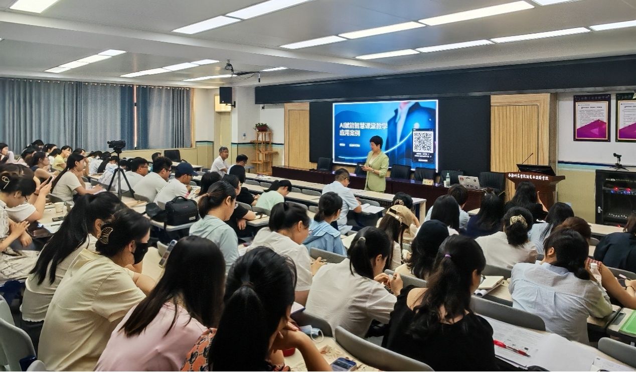随后,钱莉娜以《生成式AI赋能智慧课堂教学应用案例》为主题,讲授了培训课。培训深入探讨了生成式AI对教学设计、评价体系与教研方式的重构潜力。现场通过雨课堂、AI助教、DeepSeek、豆包等多种智能系统和工具的演示与互动,使参会教师直观感受技术如何助力教学提质增效。教师们积极参与互动,对AI技术在日常教学中的应用前景表示高度关注。