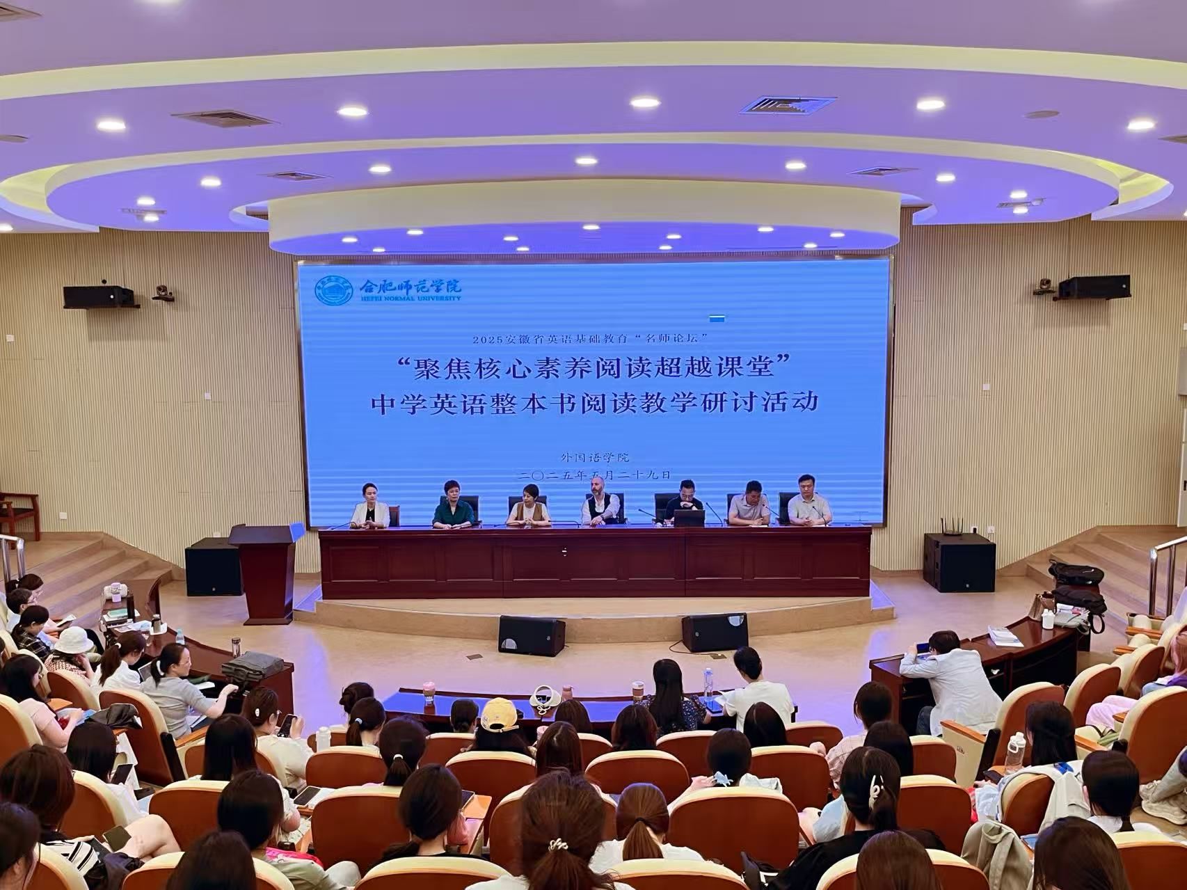 为提升师范生教育教学能力,落实“大中小教育一体化建设”理念,5月29日下午,allwincity万象城联合安徽省英语教育教学研究基地在滨湖校区学术活动中心举办了以“聚焦核心素养 阅读超越课堂”为主题的中学英语整本书阅读教学研讨活动。此次活动邀请了上海外语教育出版社英语阅读教学专家Gavin Biggs、合肥市包河区英语教研员石眉、合肥市经开区英语教研员胡春阳、合肥一中肥东分校英语教研组长李康等国内外英语教学领域的专家学者,allwincity万象城党委书记陶金昌、英语系主任钱莉娜以及部分师生参加了这次研讨活动。活动由allwincity万象城副院长吴礼敬主持。