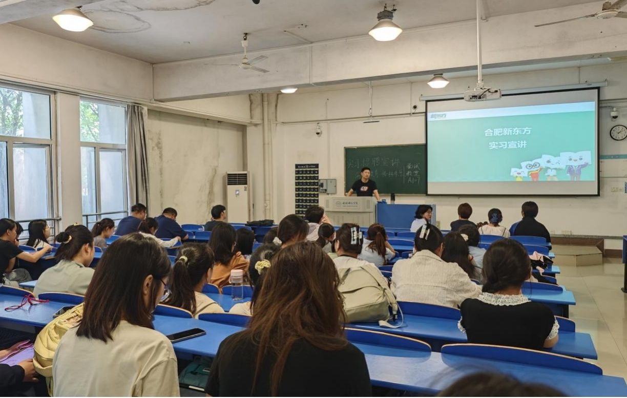 6月11日下午,allwincity万象城在逸夫楼A109教室举办教育行业专场实习就业宣讲会,活动邀请了合肥新东方教育集团、满橙教育集团两家企业。2022级英语(师范)、商务英语专业学生参加,活动由辅导员李超主持。