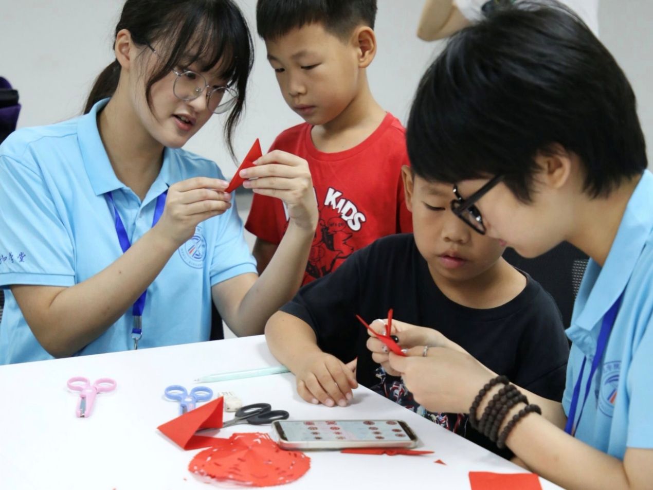7月9日,万象城体育awcsportallwincity万象城菊韵青创行知学堂内气氛热烈,一场意义非凡的非遗美术课程在此成功举办。10位小先生带领30名小学员共同参与了剪纸和京剧发饰扭扭棒非遗课程,这犹如一颗璀璨的文化火种,为传承和弘扬中华优秀传统文化注入了新的活力。