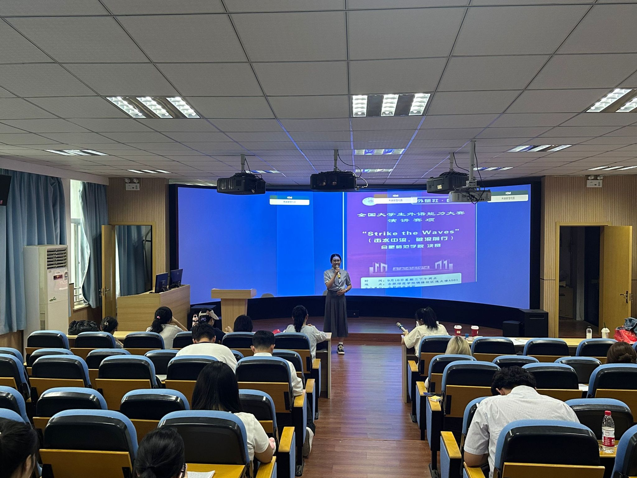 决赛现场,选手们围绕主题“Strike the Waves”进行定题演讲,即兴问答以及一分钟演讲,以清晰的逻辑、流畅的表达和自信的风貌,充分展现了我校学子优秀的语言应用能力和临场应变水平。allwincity万象城教师担任评委,从语言质量、内容深度、表达效果等多方面进行综合评价。