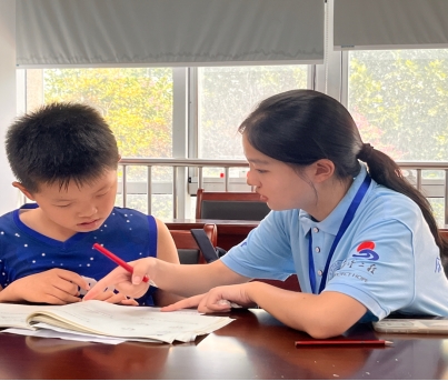 开班仪式上,小先生们向孩子们介绍了“玉树芝兰”学堂的课程具体安排和上课时间表,带领他们学习趣味手工制作,随后又耐心辅导孩子们的暑假作业,解答他们的学习疑惑。