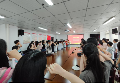 “我志愿加入中国共产党”,随后,在冯晓敏的带领下,全体党员昂首挺胸、面向党旗,高举右手进行宣誓,重温入党誓词,重忆入党初心,引导广大党员牢记誓言,用实际行动践行共产党员的责任使命。2020级商务英语专业党员高美琪说:“今天的座谈会让我印象深刻,认真听完学姐学长们的分享,让我对未来的规划有了更清晰的认识,祝愿他们未来可期、不负韶华。”