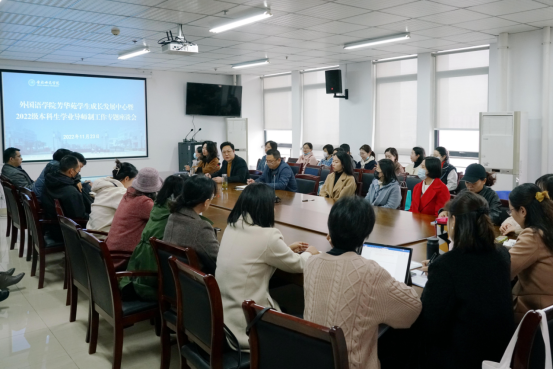 会上,方媛介绍了2022级学生的整体情况。她从学生的年龄特点、生源地构成、家庭经济情况、心理健康情况和在校学习情况等方面进行了详细分析,并向学业导师们反馈了学生在学习技能和专业发展方面的困惑和诉求。